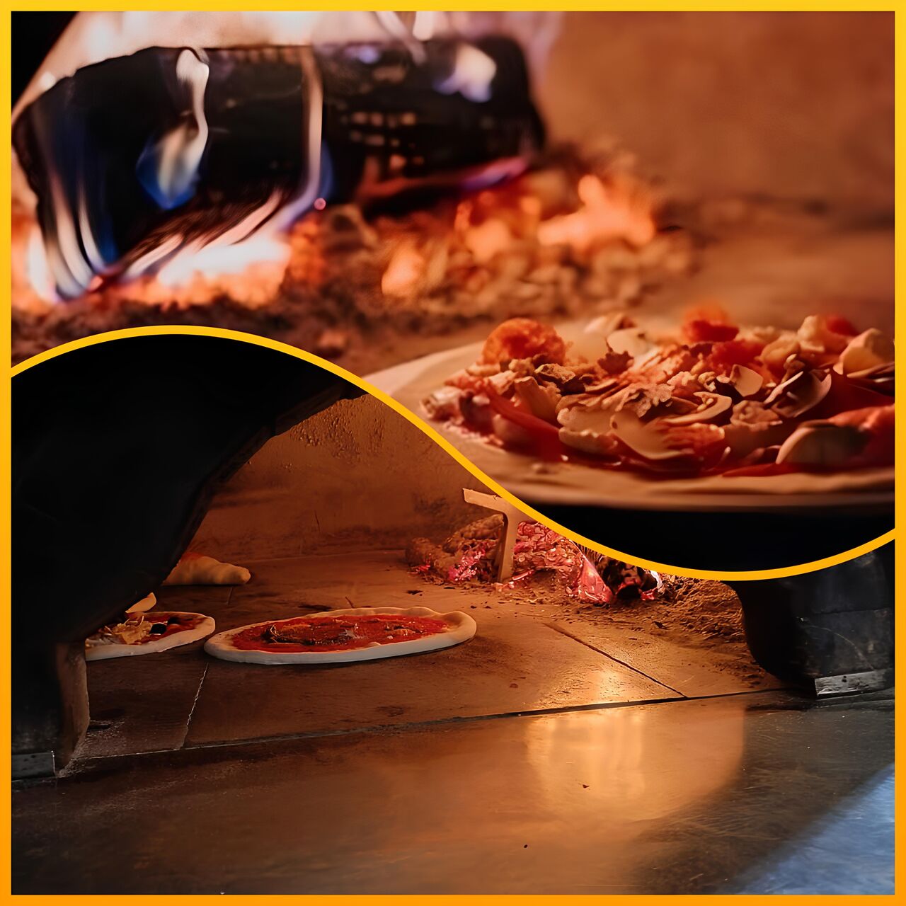 È il forno a legna la vera casa della pizza ed è lì che si gonfia d'orgoglio, si agghinda di mille colori, si mette i profumi più accattivanti e, così esce dal forno ...fumante e pronta per essere gustata!