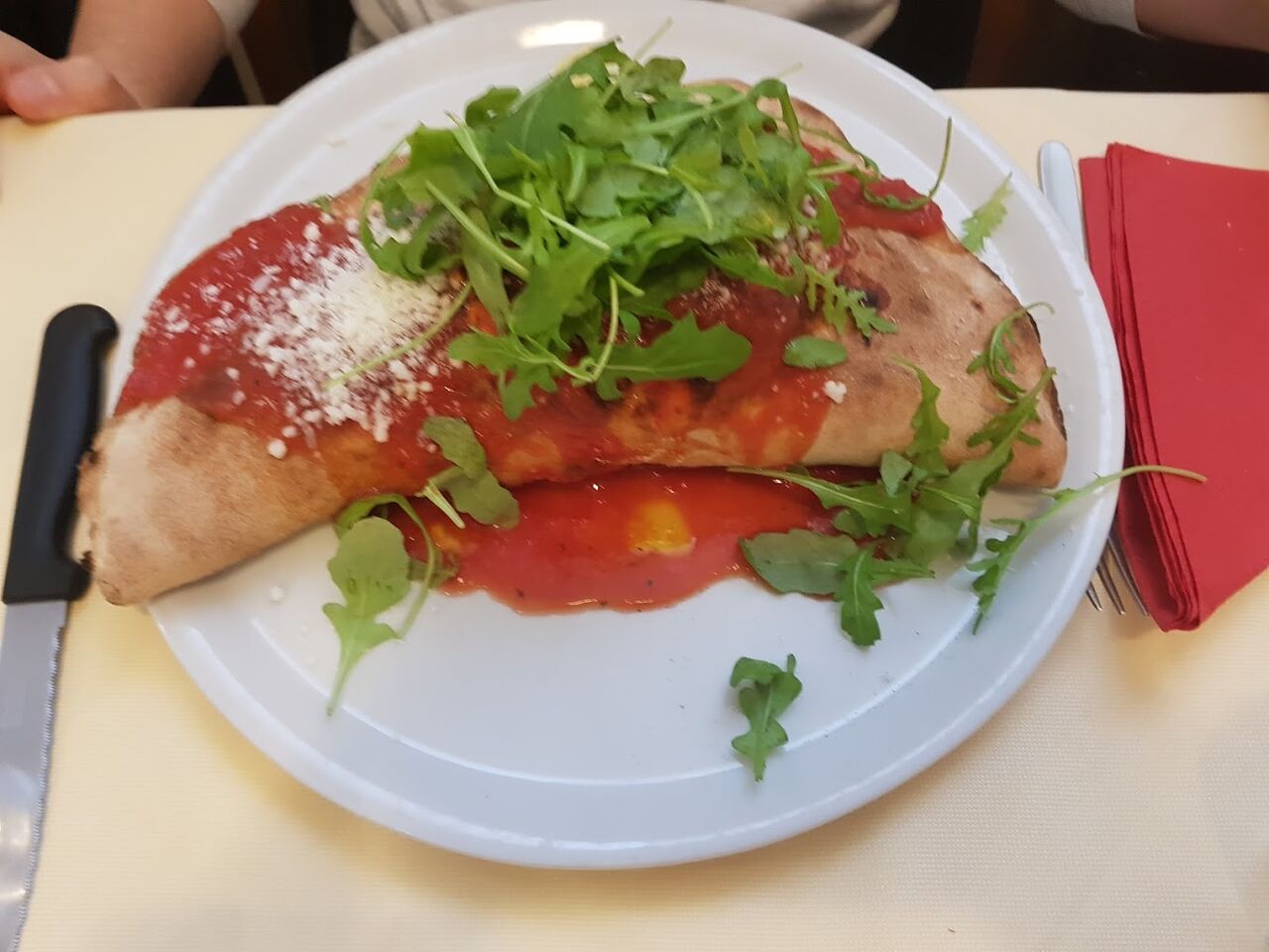Non un semplice calzone, ma IL CALZONE fumante, ricoperto da una passata di pomodoro speziata e guarnito con rucola e formaggio grana, il tutto insaporito da olio extra vergine di oliva: un tripudio di bontà!